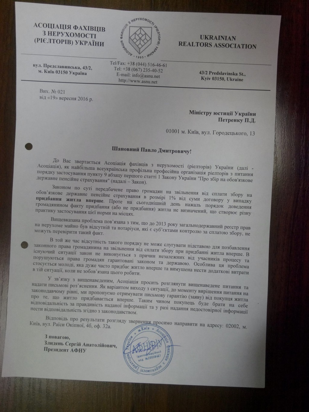 Як найбільша всеукраїнська профільна професійна організація ріелторів у своєму звернені до головного правничого відомства країни аргументує свою позицію з посиланням на норми чинного законодавства та пропонує фахове рішення цієї проблеми.