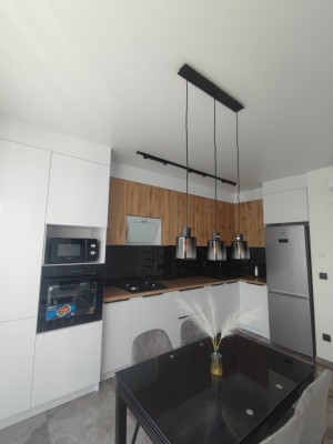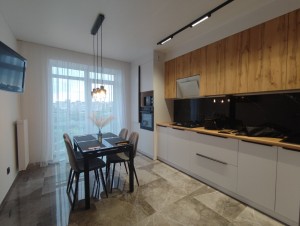 Ласкаво просимо до абсолютно нової 2-кімнатної квартири. Це чистий та свіжий простір, в якому ще ніхто не проживав. Дві окремі кімнати, кухня, санвузол та прихожа. Квартира вражає своїм дизайнерським ремонтом, сучасними меблями та новою побутовою технікою (газова поверхня, витяжка, ел. духовка, мікрохвильова, холодильник, посудомийка, три плазмові телевізори, для комфортного клімату встановлені три кондиціонери, набори нового посуду, ел.чайник, доска для прасування + праска, сушка для одягу, пилосос), швидкісний інтернет. Ванна кімната має дорогу сантехніку. Індивідуальне опалення та підігрів підлоги. З кухні вихід на невеличкий балкон. Квартира розташована в закритому дворі з охороною та паркінгом, що забезпечує безпеку та зручність для мешканців. Ви також будете мати можливість насолоджуватися близькістю до міського парку та озера, де ви зможете проводити час на свіжому повітрі. Ця абсолютно нова квартира - це ваш шанс створити свій власний комфортний та затишний простір. Не втрачайте можливості насолодитися першими мешканцями цього чудового житла.