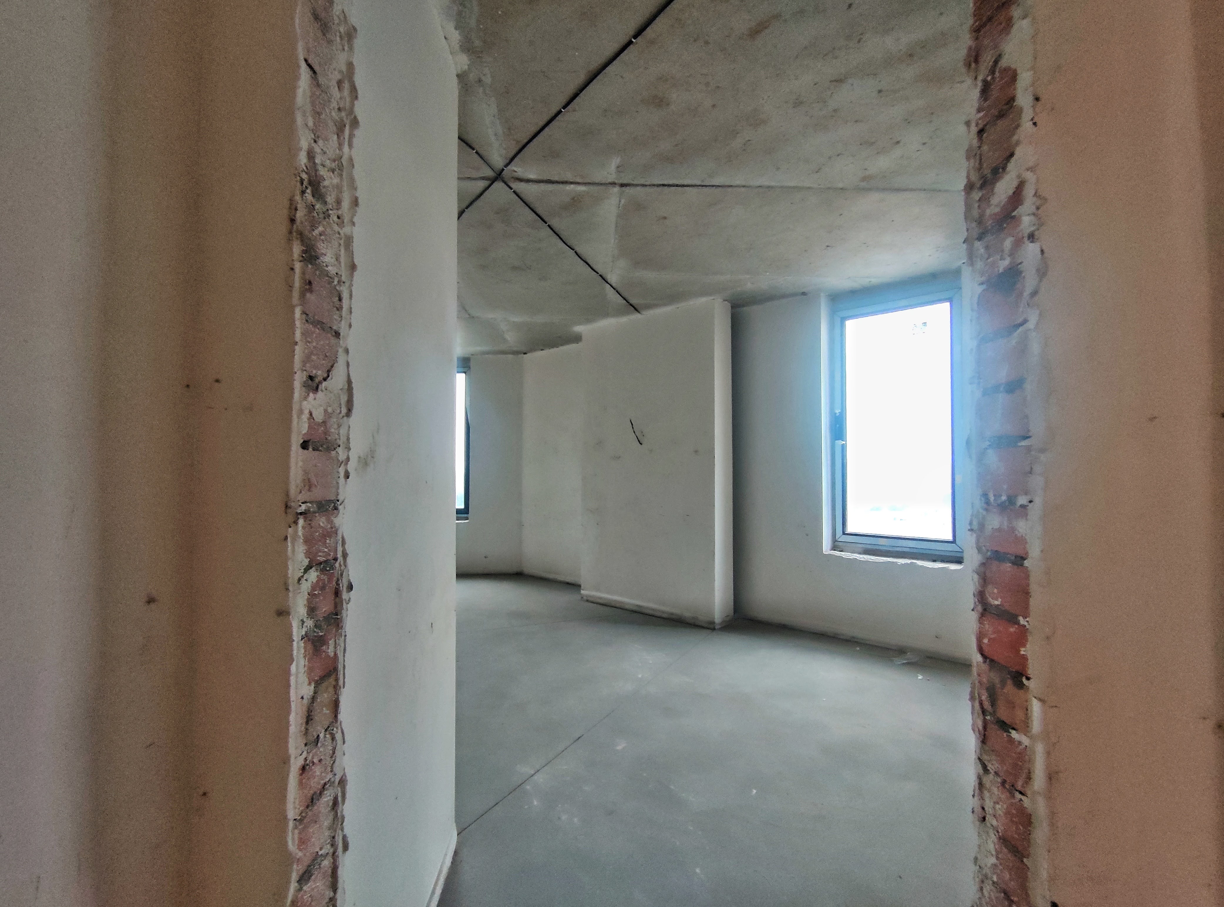 Общий метраж– 101.4 кв.м. 2 раздельные комнаты и просторная кухня-гостиная, 2 сан.узла, 1 балкон. Видовой 13-й этаж. Квартира – после строителей. Но уже сделана стяжка на полу и стенах, електро-разводка!! Уже можно заходить на ремонт. Установлены счетчики на тепло, воду, электричество.