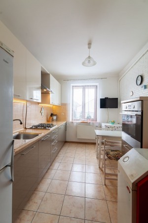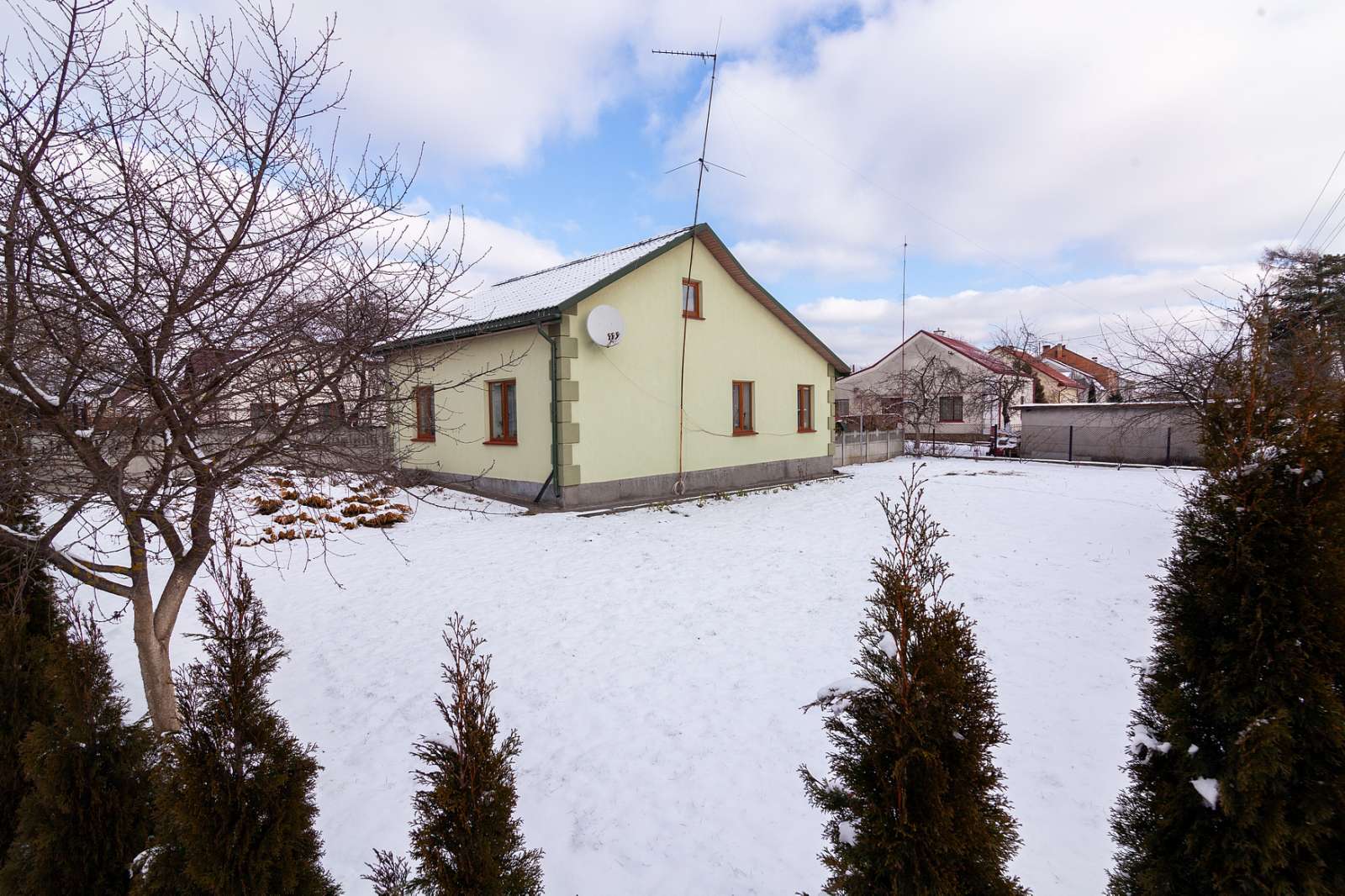 Будинок розміщення близько центру по вулиці Львівська, розвинена інфраструктура: школа, сполучення громадського транспорту, магазини, церква тощо. Будинок одноповерховий в хорошому стані, є все необхідне для проживання, утеплений, дах перекритий, залишаються вмонтовані меблі. В будинку 3 спальні, вітальня, кухня, санвузол, підвал. На території є гараж та літня кухня, альтанка, сад з молодими деревами, кущами, виноградом. Ділянка понад 12 сот по периметру загороджена та засаджена туями. Розмір та форма ділянки дозволяють будувати на території ще один будинок.