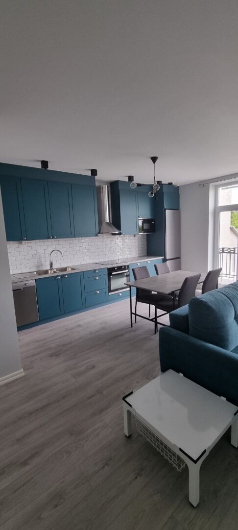 Планування: ізольована спальня, простора кухня-вітальня з виходом на відкритий балкон, суміжний з ванною санвузол. Квартира укомплектована усім необхідним для комфортного проживання: посудомийна машина Eleсtrolux, холодильник Samsung, мікрохвильова піч, пральна та сушильна машина Whirlpool, витяжка Franke. Повноцінна кухня з електричною плитою та духовою шафою Cylinda. У вітальні зручний диван, що розкладається та телевізор LG. У спальні велике двоспальне ліжко з ортопедичним матрацом, місткою вмонтованою шафою. Індивідуальне опалення, двофункційний котел. Підігрів підлоги у кухні, вітальні та ванній. Є відкритий балкончик з виглядом на озеленене подвір'я та будівлі Львова. Перше заселення. Поруч парк Знесіння, Винниківський ринок, зупинка громадського транспорту. Є відеоогляд помешкання.